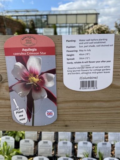 Graceful slender stems of red and white long spurred flowers for cottage gardens and borders, attractive mid-green leaves.