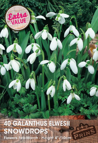 Galanthus Elwesii ( Single Snowdrops). Flowers Feb-March, 4″/10cm height. Best planted in clumps. Pack Contents 40 Bulbs.