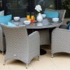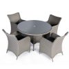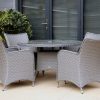 The Amalfi Round Four Seat Dining Set is an instant upgrade for your garden dining space. This superb family dining set is just right for al fresco dining with your nearest and dearest. Classically curved dining chairs for comfort and exaggerates the beautifully detailed weave. Using a 12mm hook weave back to back and hand woven around the main body of the aluminium chair and table frames, utilising a 5mm round weave detailing the edges creates a stunning collection. With the unique double hook weave the Amalfi has a soft textured appearance complemented with soft Fossil Onyx fabric cushions which are zipped for easy removal for cleaning.